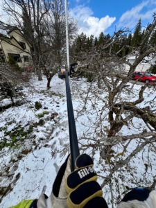 Pitkän leikkuupäivän hienoja puolia on se, ettei pääse itseään karkuun. Pitää koko ajan katsella napsittavia oksia, miettiä seuraavaa siirtoa ja pysyä tikkailla. Kuulin autojen ja ihmisten kulkemiset, lintujen laulun ja lumen sulamisen sekä tunsin auringon satunnaisen lämmön.