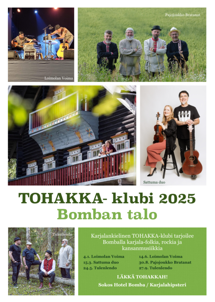 Karjalankielinen musiikki saa oman kotinsa Nurmeksen Bomban talolta, kun Tohakka-klubit käynnistyvät vuonna 2025. Kuutena iltana Bomban talolla raikaa folk, rock sekä perinteisempi karjalainen kansanmusiikki.